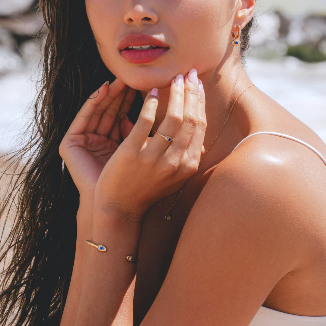 Our gold Evil Eye Bracelet is more than a statement, it’s your everyday shield. Designed to protect your energy and reflect your strength, this bold cuff channels the spirit of ancient armour with a modern edge.