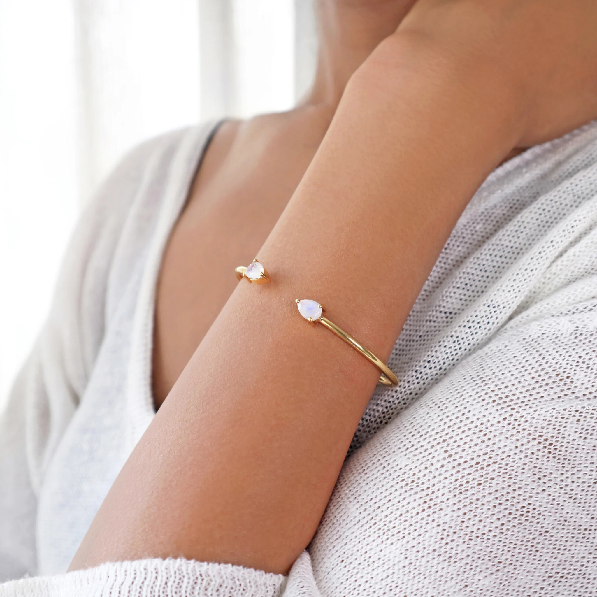 Moonstone Teardrop Cuff Bangle Bracelet