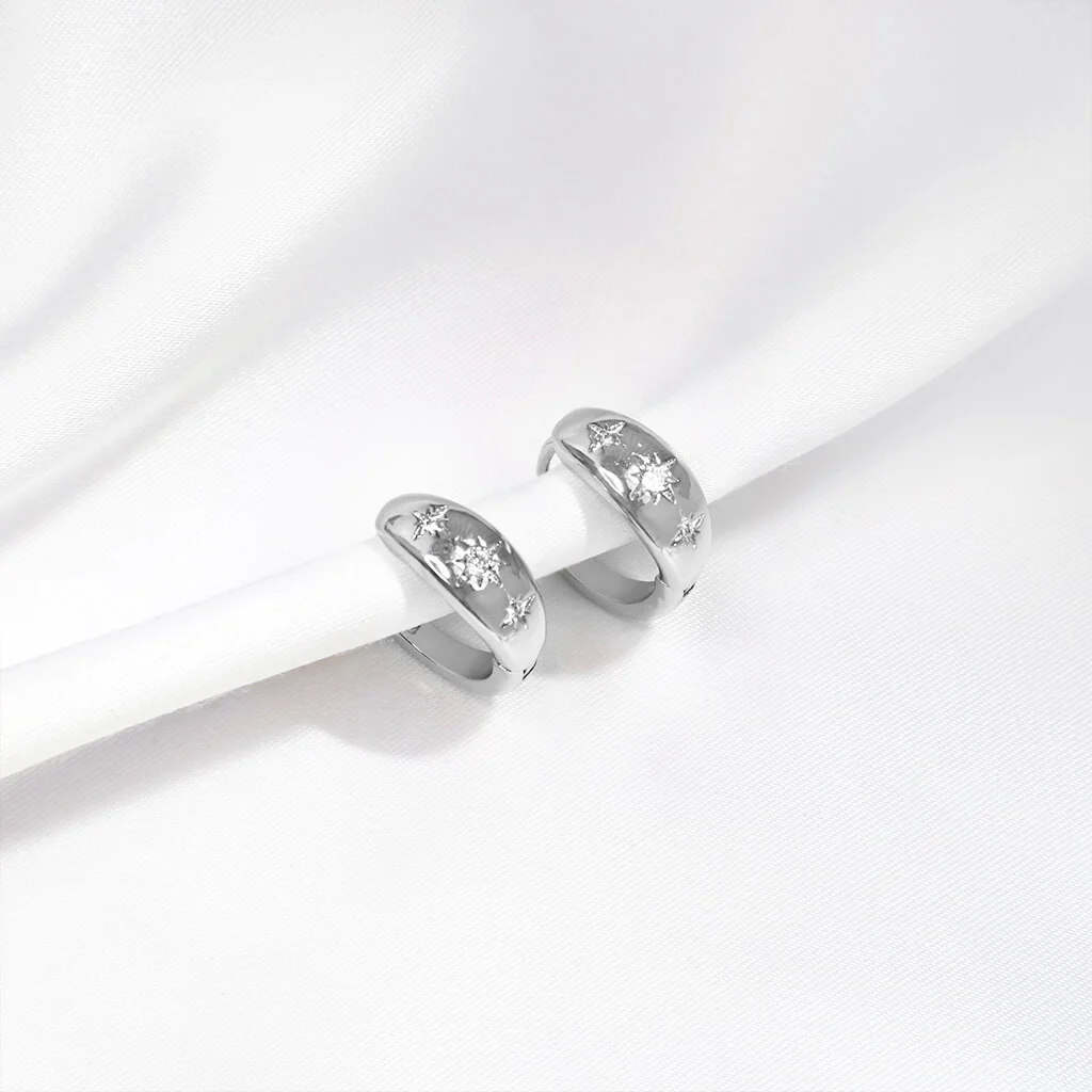 You and these silver star hoops? A perfect match written in the stars. With their vintage-inspired style and twinkling cubic zirconia stars, these small thick hoops are made to shine with you, day in, day out.